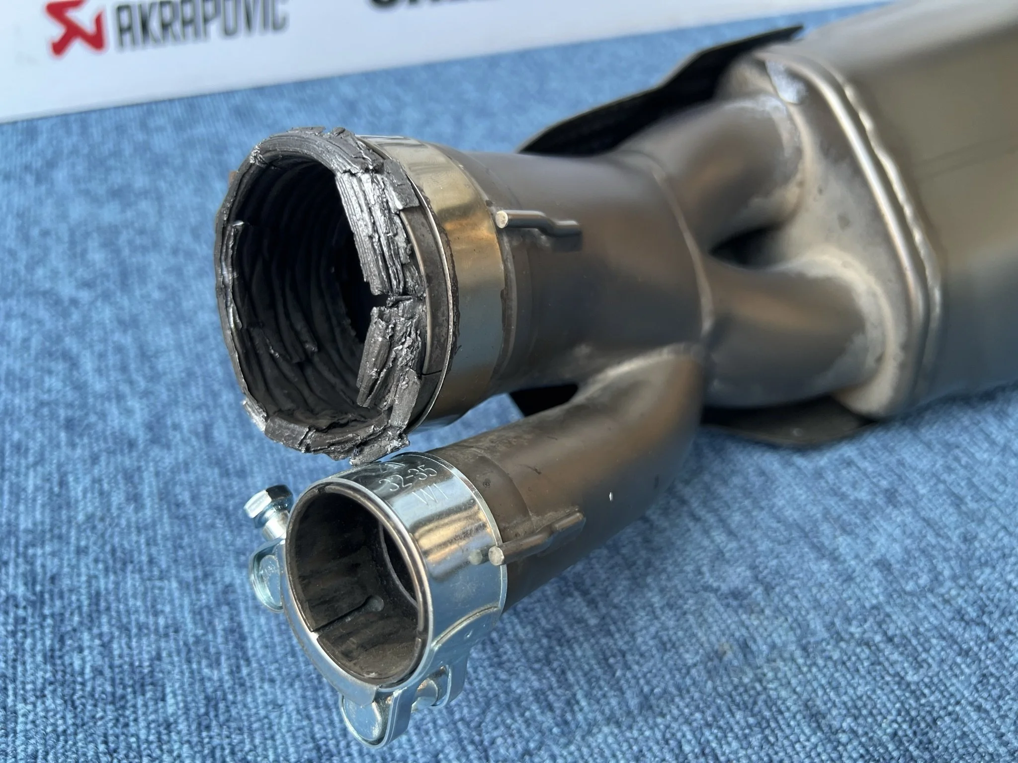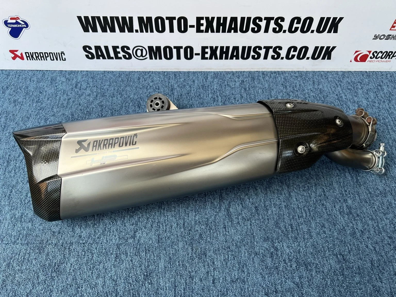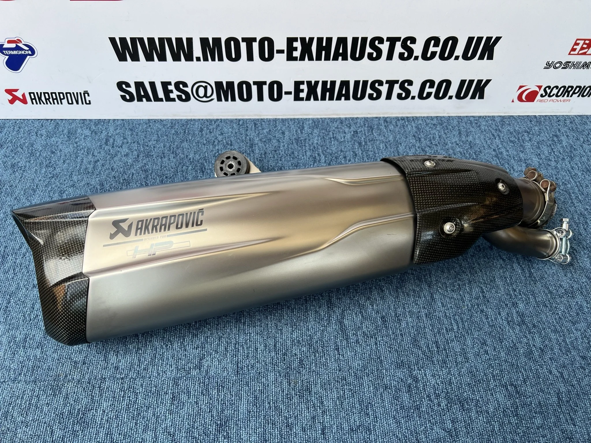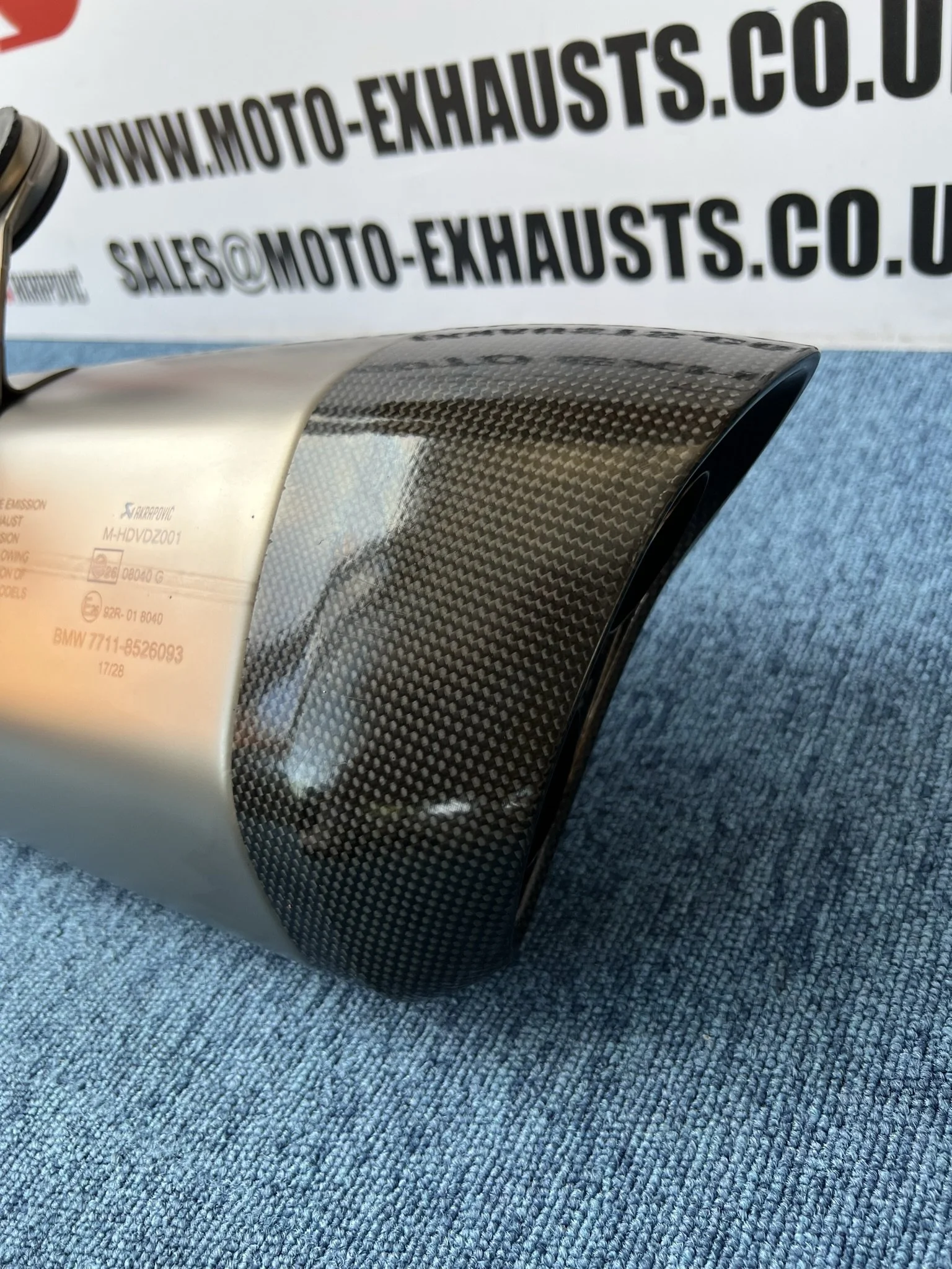 Genuine BMW Akrapovic HP end can silencer. Used exhaust with some minor damage, small pin dent on seam below Akrapovic logo. Small Chip on top side above Akrapovic logo. Light scrapes to the carbon guard and the internal carbon gasket is worn (possibly still usable) Otherwise in good condition, please see photos showing full condition and close ups of damage.